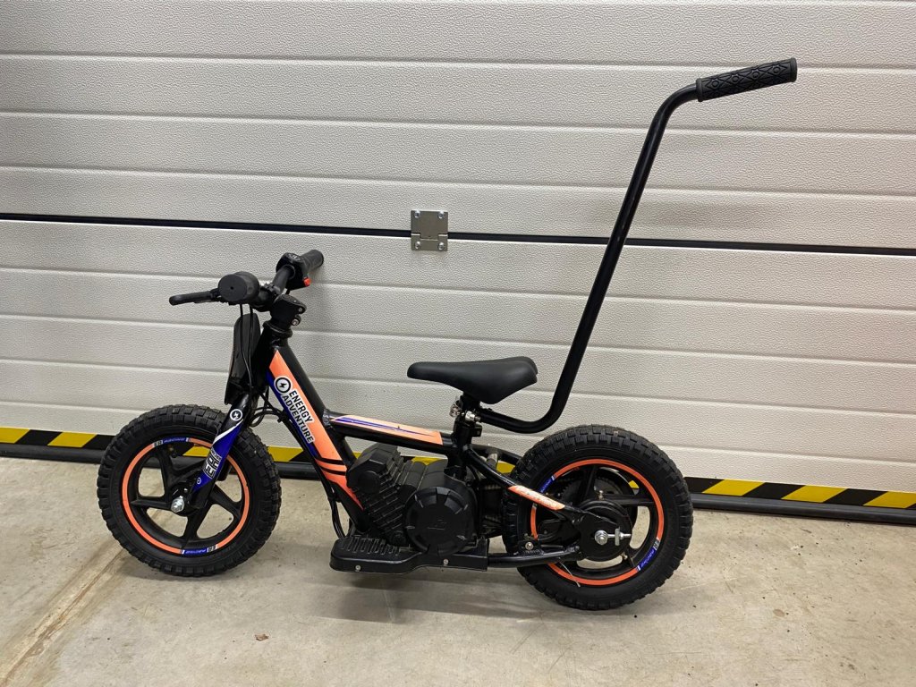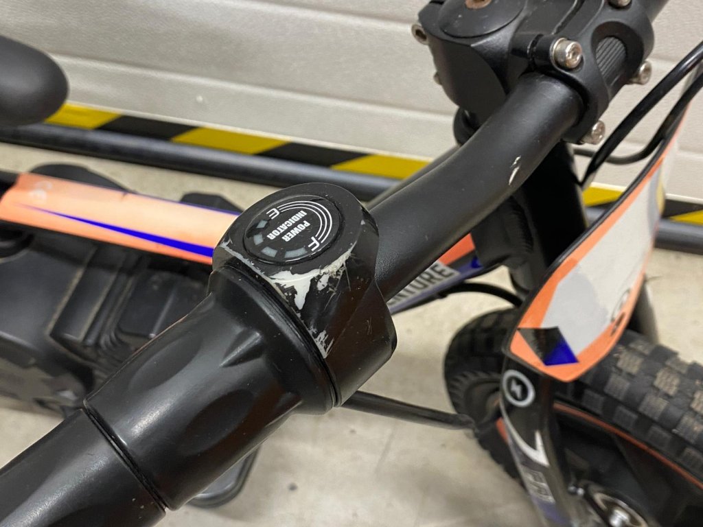 Odřené, vyšisované polepy, odřený displej, s vodící tyčí.